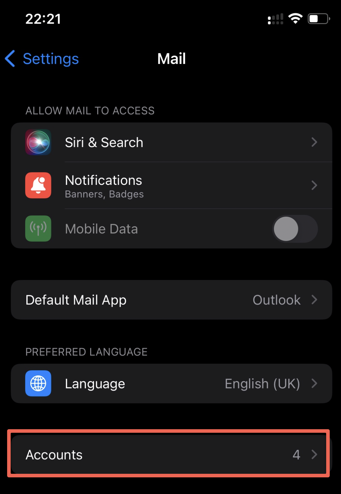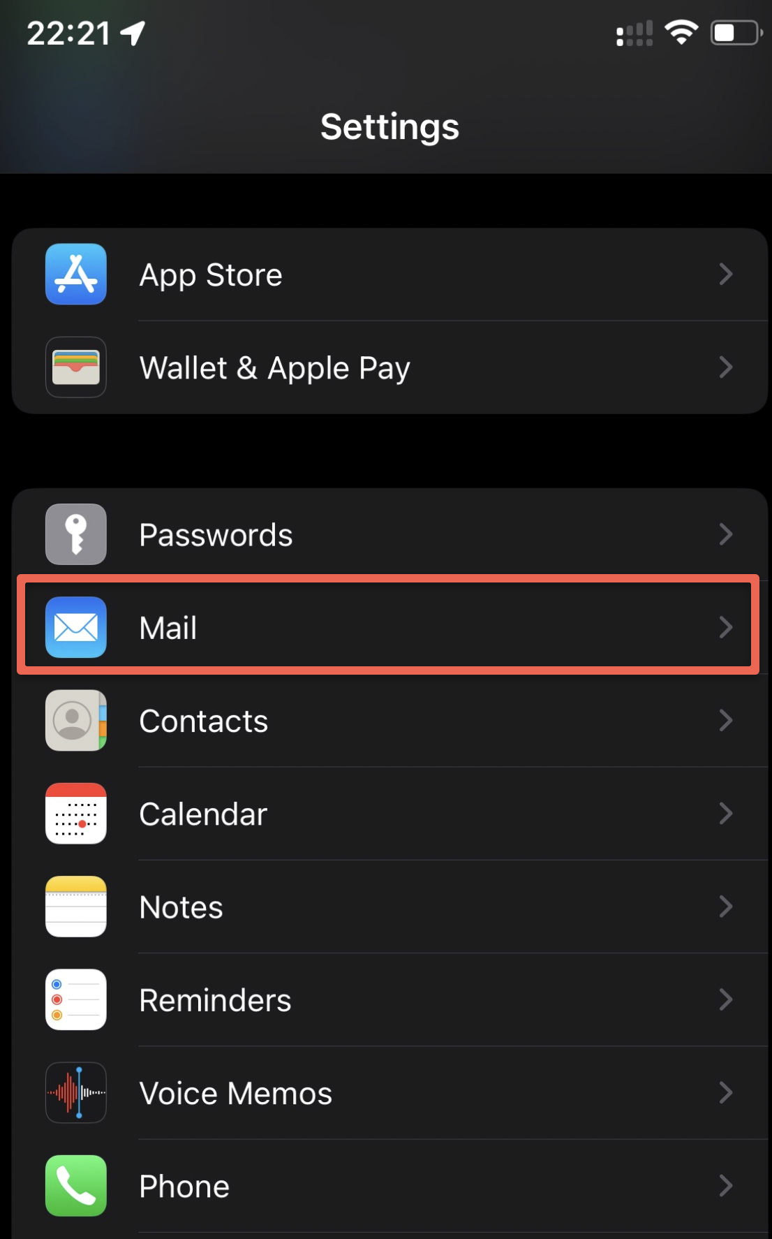 - Open 'Settings' and scroll down to 'Mail'.