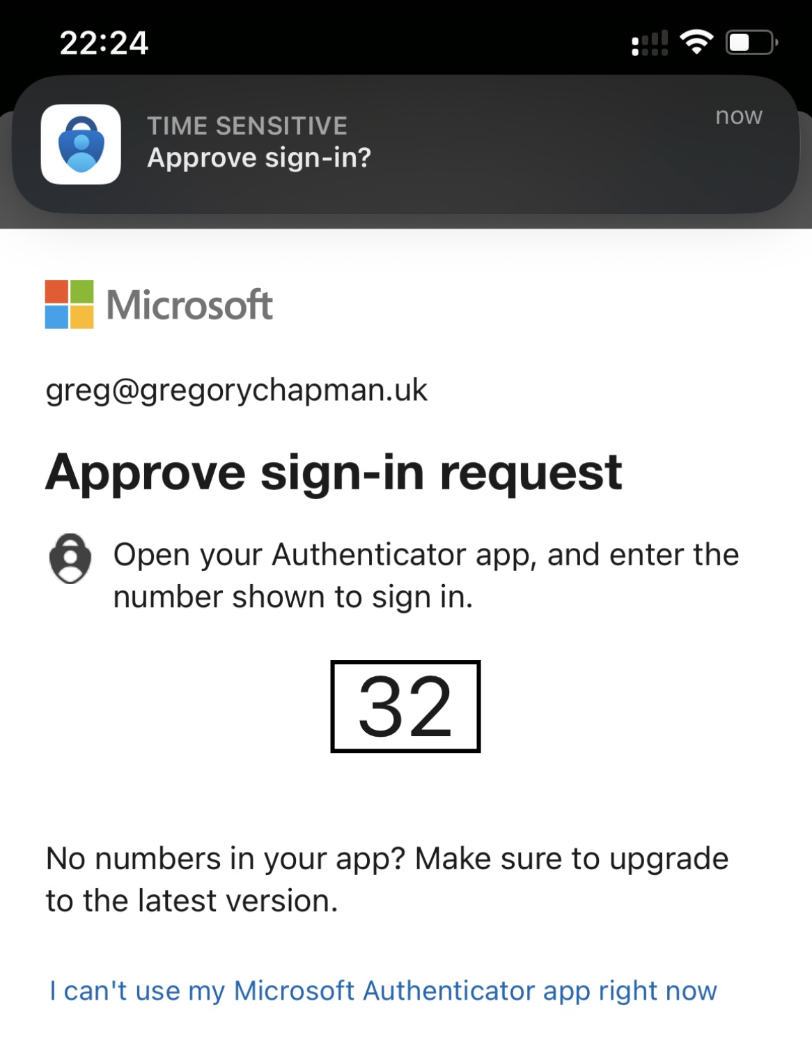 - You will be asked to approve the sign-in using the Authenticator app on your phone. Once done, return to 'Settings'.