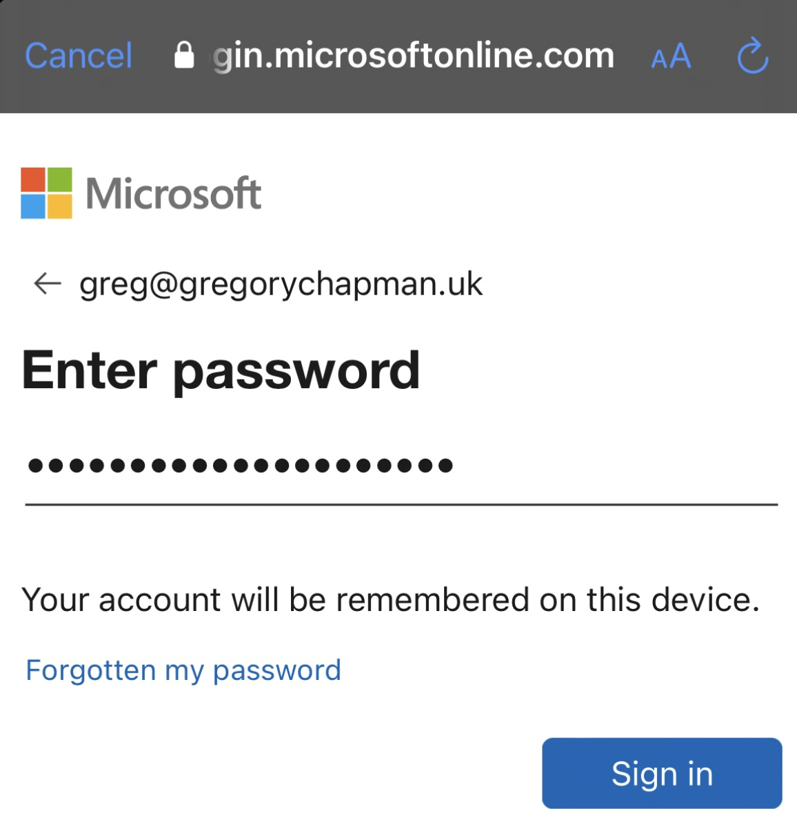- Enter your password and then tap 'Sign In'.